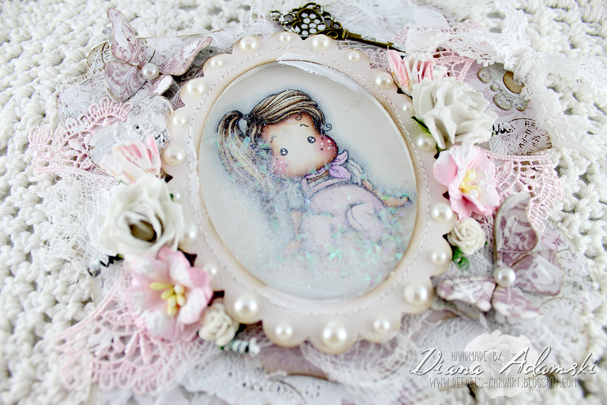 This is such a delightful shaker card, love this sweet Tilda and all your very pretty details. Wonderful creation Dee Dee. . Thank you so much for sharing with us over at Midweek Magnolias. Good luck in the draw.