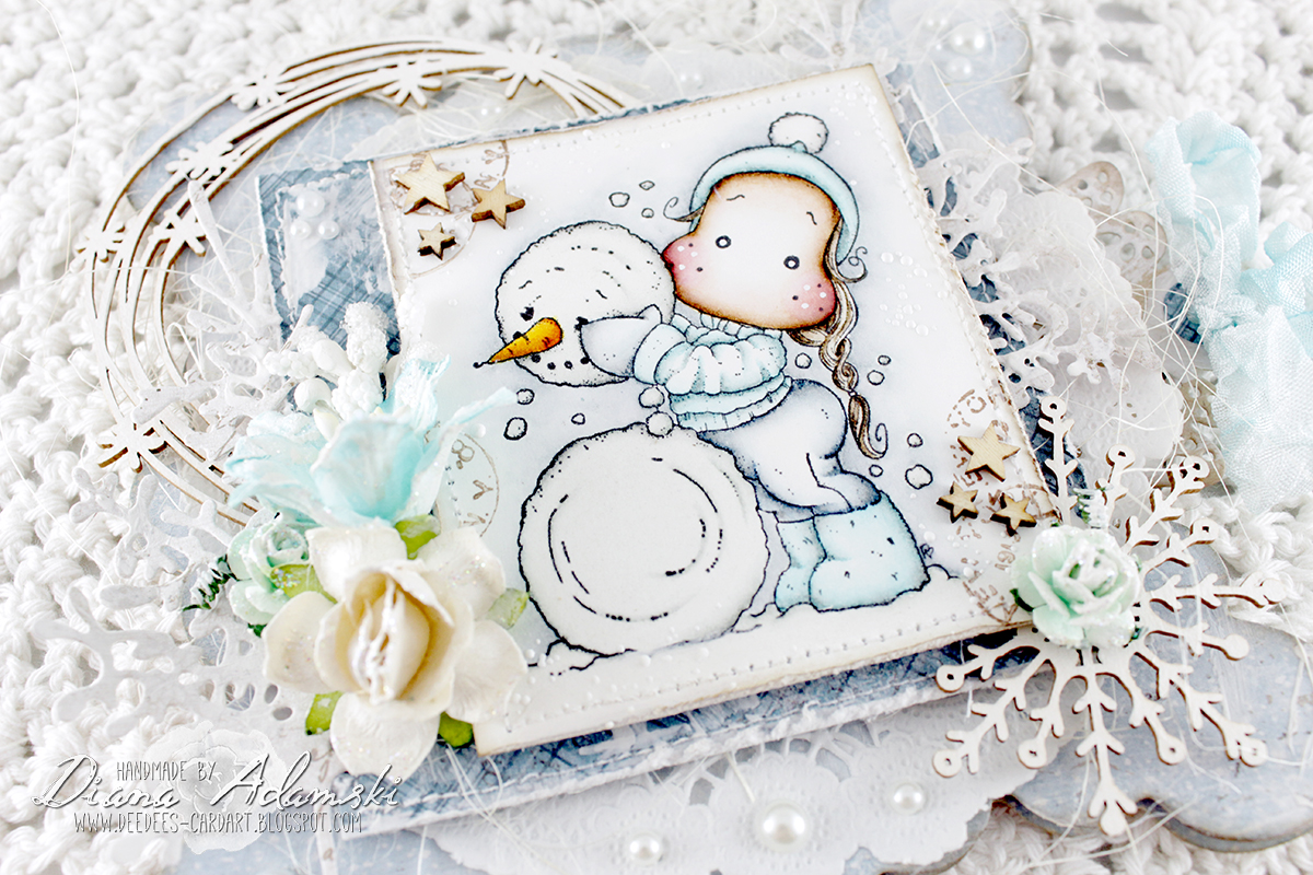 The great design paper is of course again from MajaDesign. From the "Vintage Frost Basic Collection". The stamp is "Me and my Snowman" and is from the Aspen Holidays Collection of Magnolia. The punches are also made by Magnolia.